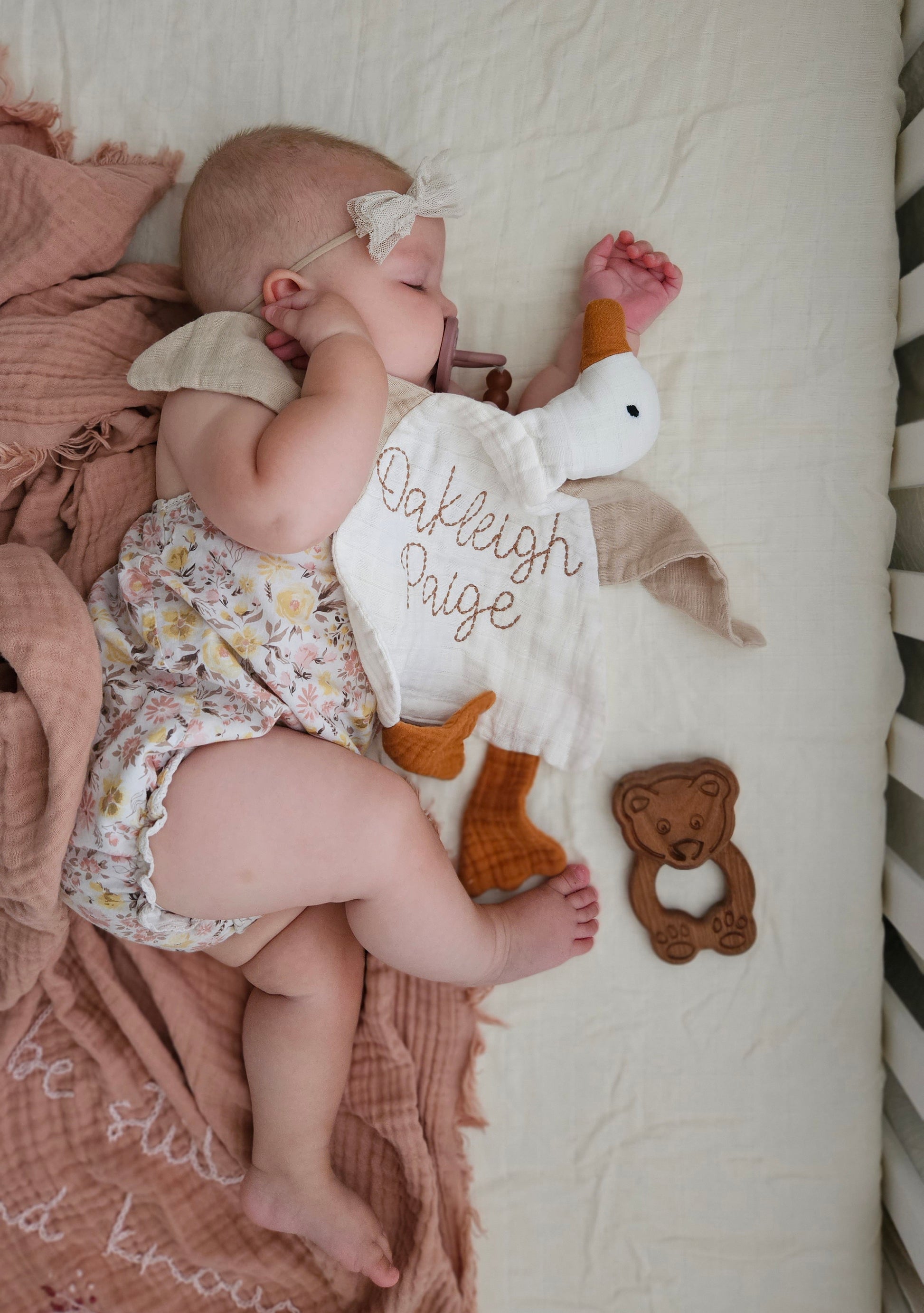 Babies will love the incredibly gentle feel of the soft fabric against their skin. Natural and eco-friendly, rest assured knowing that the blanket is free from harmful substances. This lovey is ideal for baby to cuddling while sleeping.