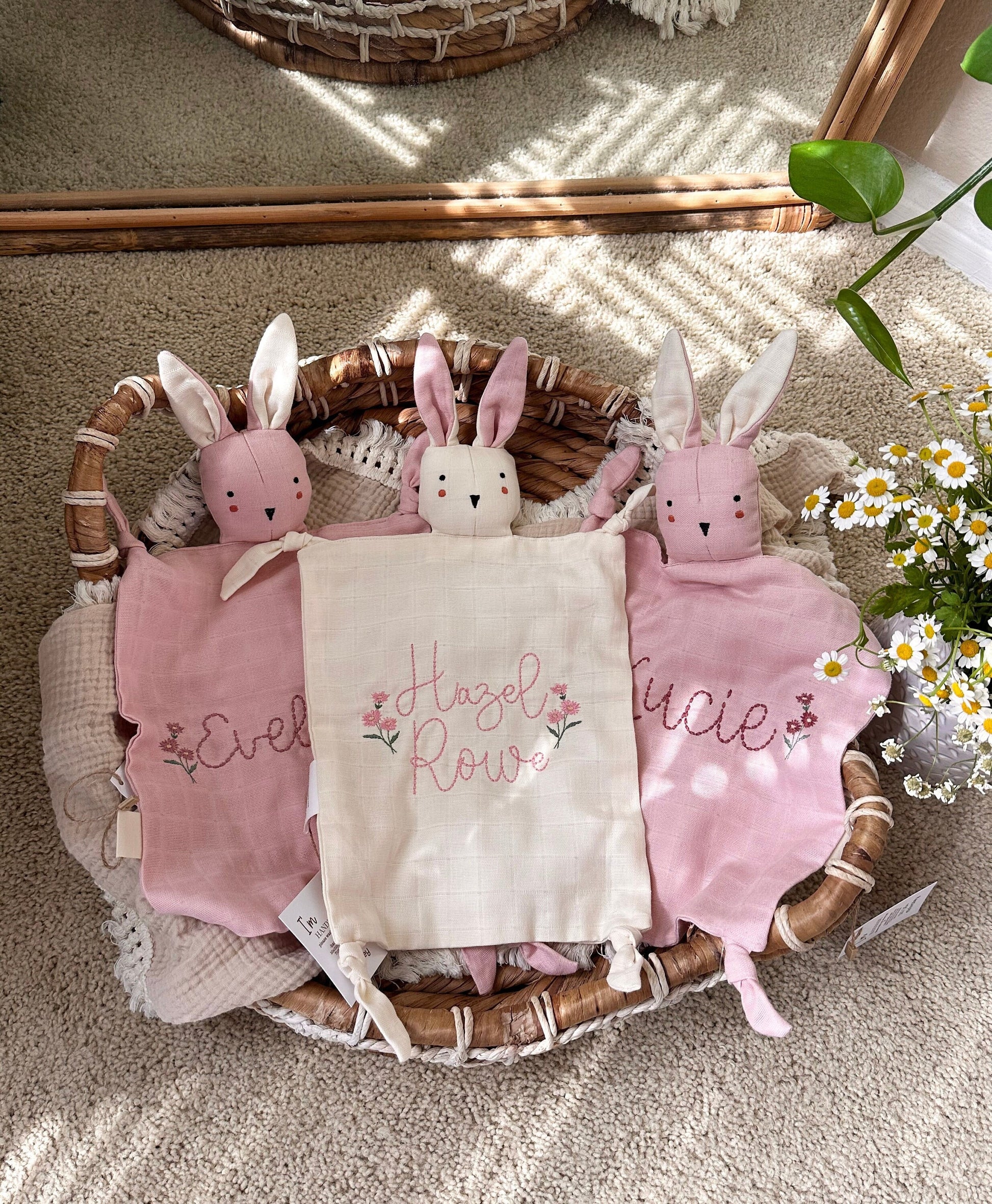If you wish to personalize the lovey, please indicate name(s) to be embroidered and choice of thread color in the "add your personalization section".